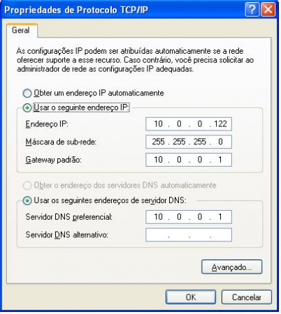 Se o computador já está conectado na internet, possivelmente um técnico fez isso. Para saber qual é o número de IP vá no Windows em propriedades da internet e ache a janela abaixo.